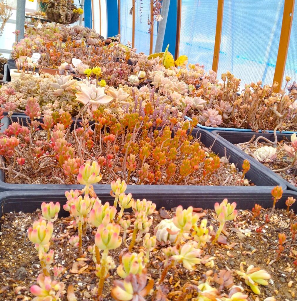 敷地内にあるビニールハウスでは、様々な多肉植物を大切に育てています。